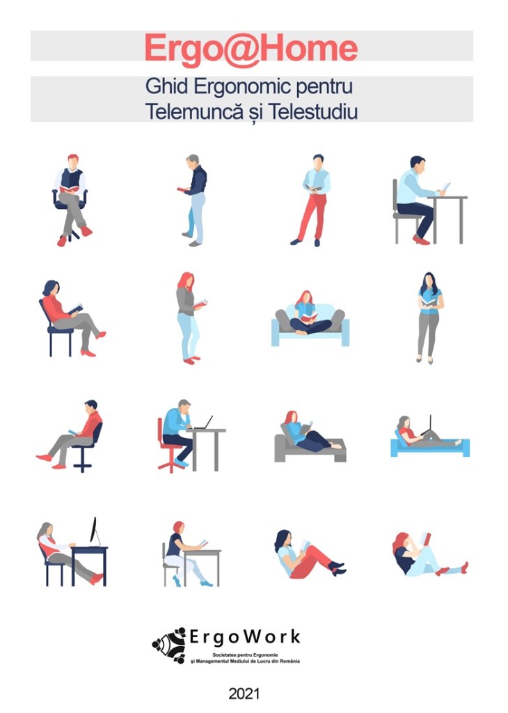 Acest ghid a fost conceput în perioada pandemiei de COVID-19. Bolile infecțioase sunt cunoscute a fi amenințări majore la adresa vieții umane, a societății și chiar a întregii civilizații; COVID-19 a demonstrat că oamenii nu pot fi pe deplin pregătiți pentru o stare de pandemie, în ciuda tuturor lecțiilor învățate și în ciuda tuturor garanțiilor științifice. Din păcate, pandemia de COVID-19 este preconizată a fi de lungă durată și vor exista o mulțime de alte surse de infecție care ne-ar putea ataca în viitor. S-a estimat că pandemia, prin actuala criză sanitară, a adăugat un avânt social uriaș care va conduce oamenii la noi stiluri de viață bazate pe tehnologia informației și comunicației (TIC), atât acasă, cât și la locul de muncă, în mod ireversibil. Această schimbare previzibilă coincide cu creșterea continuă a TIC. Fără îndoială, munca și învățarea la distanță vor juca un rol major și vor deveni o practică comună pentru mulți lucrători, elevi, studenți etc. Mediul tradițional de la locul de muncă s-a schimbat brusc. Astfel, numeroase companii și-au încurajat angajații să lucreze de acasă pentru a-și continua activitățile on-line de la distanță, evitând congestionarea birourilor, a mijloacelor de transport etc. Asemenea au procedat toate școlile și universitățile ceea ce a însemnat că tot mai mulți oameni s-au aflat, se află în telemuncă / telestudiu. Ca urmare, pandemia a accelerat mega-tendințele care se manifestau pe piața muncii și, mai ales, creșterea ponderii lucrului de acasă sau de oriunde ne-am afla și a digitizării care deservește lucrul de la distanță sau telemunca. Într-o situație asemănătoare se găsește și educația, în această perioadă, care se desfășoară de acasă, sub forma telestudiului. O consecință importantă a acestui fenomen este faptul că starea de sănătate fizică și psihică a operatorilor umani (în ipostaza lor de lucrători, manageri, elevi, studenți etc.) a avut de suferit. O contribuție importantă în acest sens au avut-o condițiile precare ergonomice pentru lucrul și studiul de acasă a majorității celor care se află în această situație. Ca urmare, principala motivație a prezentului GHID rezidă în satisfacerea nevoii de cunoștințe ergonomice a tuturor categoriilor de lucrători pentru a putea să-și îmbunătățească activitatea profesională acasă. [Anca Drăghici – coordonator ghid]